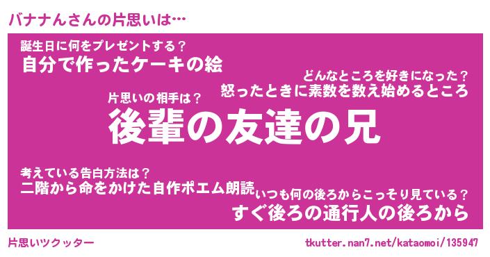 | ファンタジー風あだ名 | 『バナフェル』『エターナルバナナンー』 |
