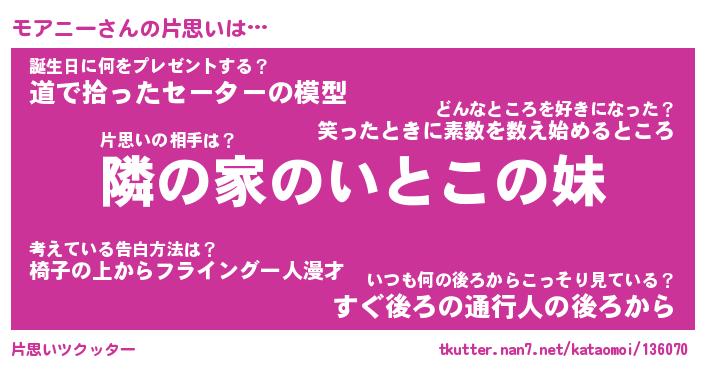 | ファンタジー風あだ名 | 『モアフェル』『エターナルモアニーー』 |