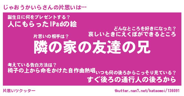 | 男性向けラノベタイトル風あだ名 | 『じゃおうかいらの憂鬱』 |