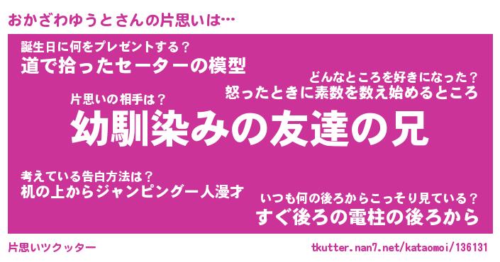 | 胡散臭い通販商品みたいなあだ名 | 『必ず成功する霊験あらたかなお札…その名も「おかざわゆうと」』 |