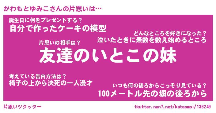 | 女子向けラノベタイトル風あだ名 | 『誰かこのかわもとゆみこを説明してください! ~契約から始まるウェディング~』 |