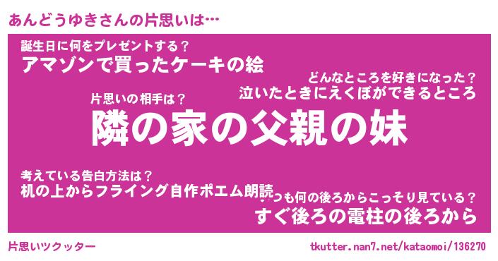 | ツイッター | あんどうゆきさんのツイッターID『tsukushi_star』 |