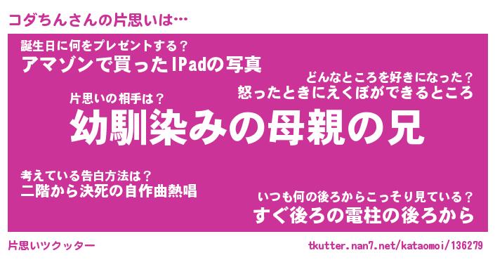 | 意味不明あだ名 | 『ペロリンコダちん』『永久保存コダちん』 |