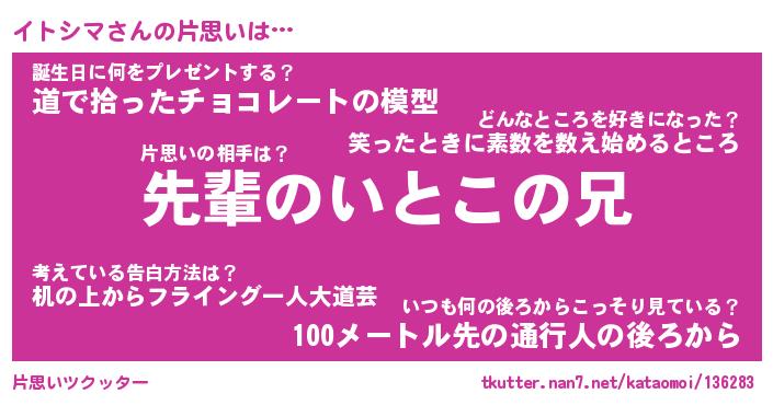 | 意味不明あだ名 | 『ペロリンイトシマ』『永久保存イトシマ』 |