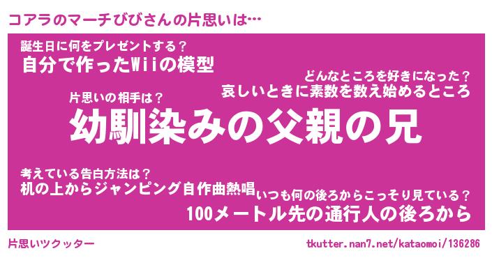 | ヘコむあだ名 | 『コアにゅー』『つくし』 |