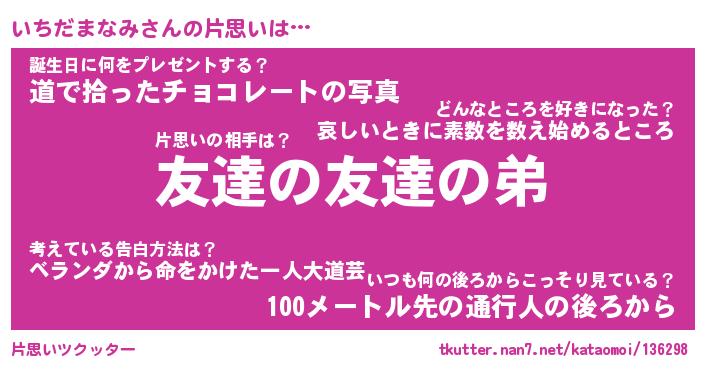 | ヘコむあだ名 | 『いちっふぃ~』『豆乳』『いちを』 |