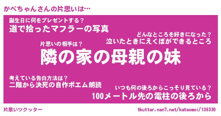 | 2回繰り返すあだ名 | 『かべかべ』『かかべべ』『にたにた』 |