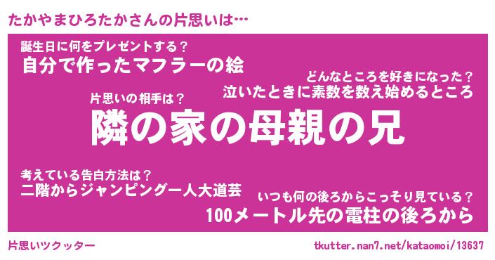 | ヘコむあだ名 | 『たかにー』『牛乳』『たかっちょ』 |
