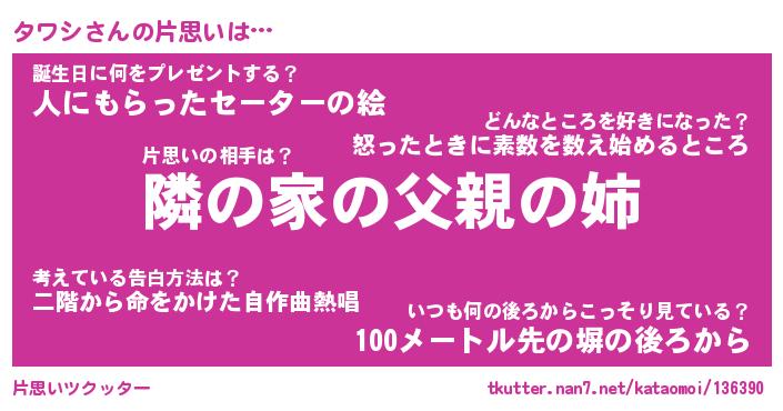 | ファンタジー風あだ名 | 『タワフェル』『エターナルタワシー』 |