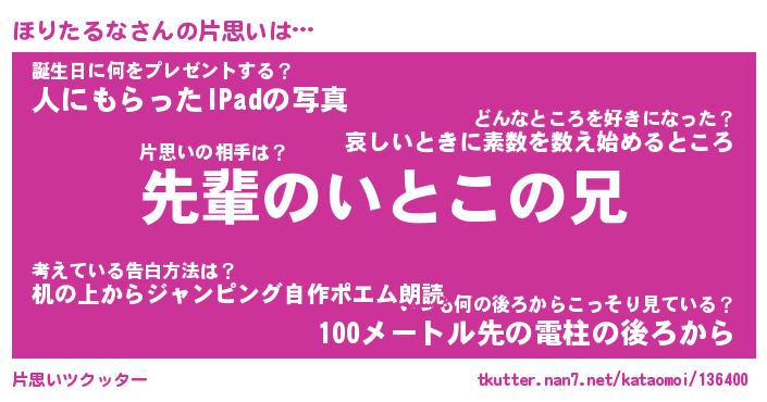 | 胡散臭い通販商品みたいなあだ名 | 『モテモテ間違いなし水晶球…その名も「ほりたるな」』 |