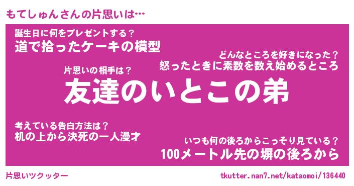 | ヒーロー風カッコイイあだ名 | 『スーパーモテシュン』『魔戒騎士モテ』 |