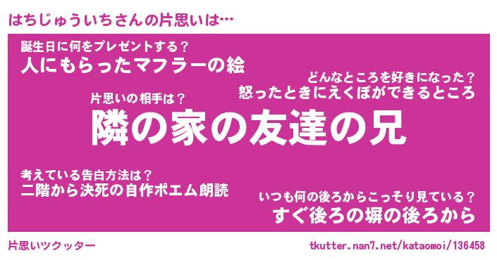 | 2回繰り返すあだ名 | 『はちはち』『ははちち』『うずうず』 |