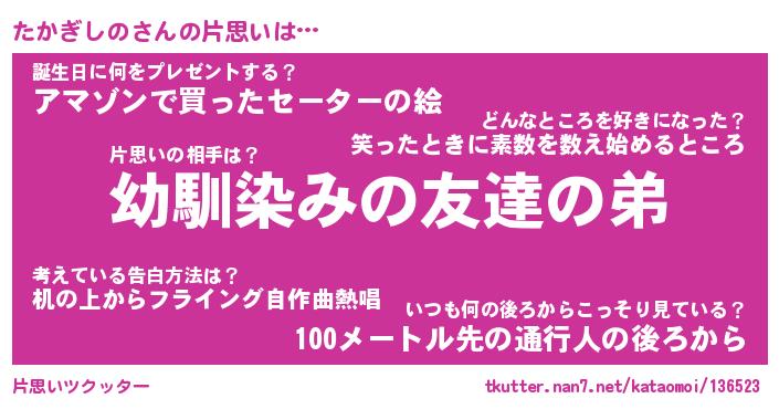| 男性向けラノベタイトル風あだ名 | 『たかぎしのの憂鬱』 |