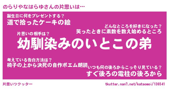 | 2回繰り返すあだ名 | 『のらのら』『ののらら』『ぬぷぬぷ』 |