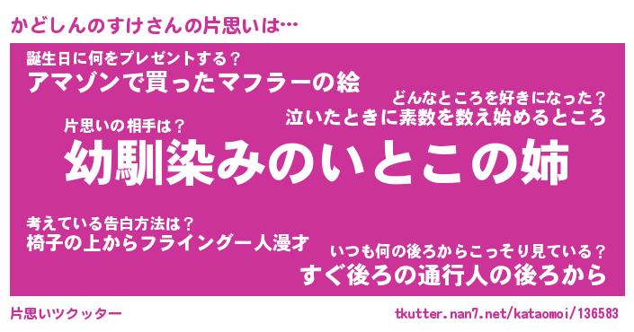 | 男性向けラノベタイトル風あだ名 | 『かどしんのすけの憂鬱』 |
