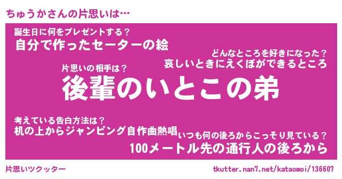 | ヒーロー風カッコイイあだ名 | 『スーパーチュウカ』『銀牙騎士チュ』 |