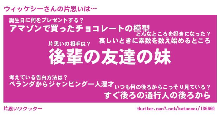 | ヒーロー風カッコイイあだ名 | 『スーパーウィッケシー』『魔戒騎士ウィ』 |