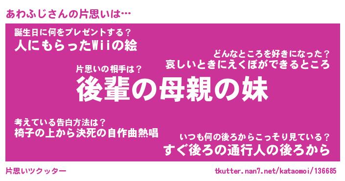 | 意味不明あだ名 | 『ペロリンあわふじ』『永久保存あわふじ』 |