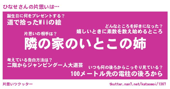 | 胡散臭い通販商品みたいなあだ名 | 『モテモテ間違いなし水晶球…その名も「ひなせ」』 |
