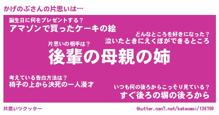 | ヘコむあだ名 | 『かげにー』『なまこ酢』『かげっぺ』 |