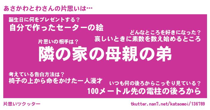 | ヘコむあだ名 | 『あさにー』『つくし』『あさお』 |