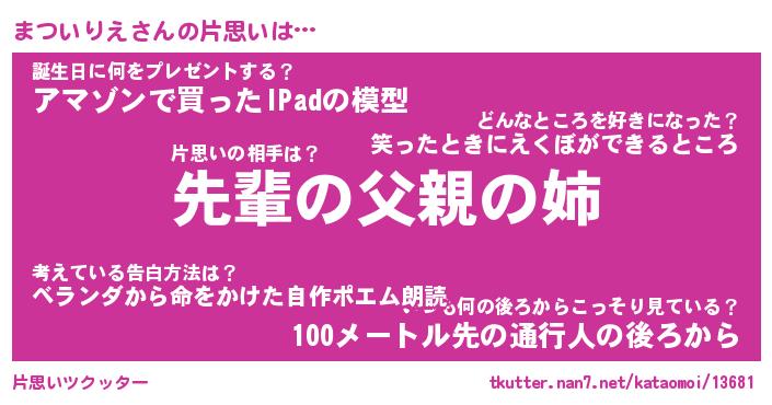 | 男性向けラノベタイトル風あだ名 | 『まついりえの憂鬱』 |