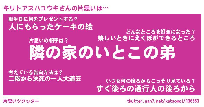 | 恥ずかしいあだ名 | 『プリティーキリトアスハユウキ』 |