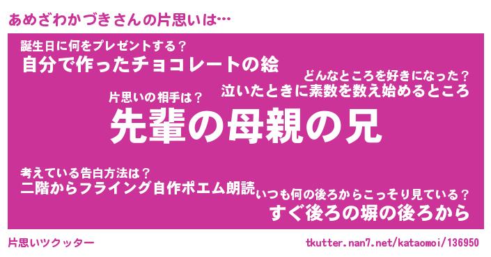 | ヘコむあだ名 | 『あめふぇ~』『酢こんぶ』『あめお』 |