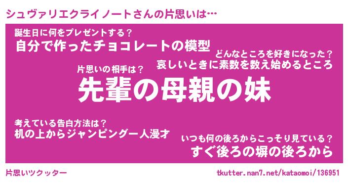 | 男性向けラノベタイトル風あだ名 | 『シュヴァリエクライノートの憂鬱』 |