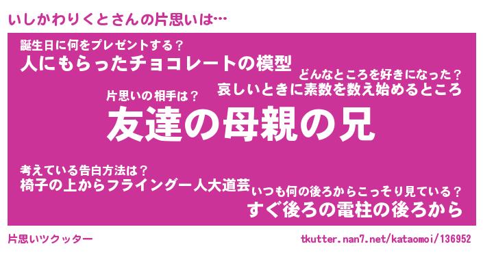 | 胡散臭い通販商品みたいなあだ名 | 『億万長者になれるブレスレット…その名も「いしかわりくと」』 |