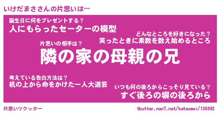 | ファンタジー風あだ名 | 『イケフェル』『エターナルイケダマサー』 |