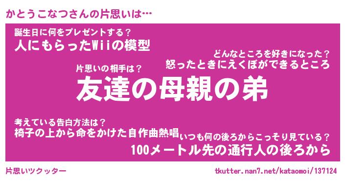 | ヘコむあだ名 | 『かとにー』『豆乳』『かとぷりん』 |
