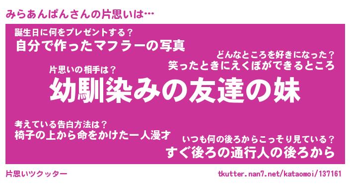 | ヘコむあだ名 | 『みらっふぃ~』『つくし』『みらを』 |