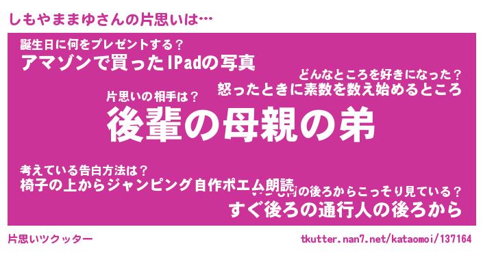 | ヘコむあだ名 | 『しもにー』『なまこ酢』『しも太郎』 |