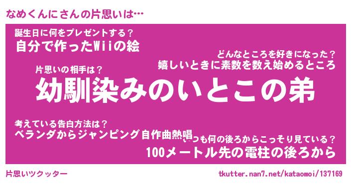 | ヘコむあだ名 | 『なめもー』『牛乳』『なめぷりん』 |