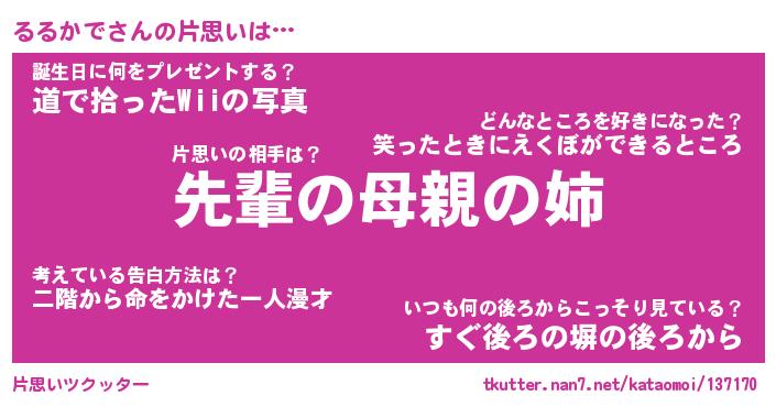 | ヘコむあだ名 | 『るるにー』『豆乳』『るる太郎』 |