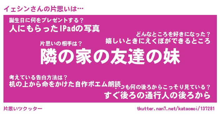 | ファンタジー風あだ名 | 『イェフェル』『エターナルイェシンー』 |