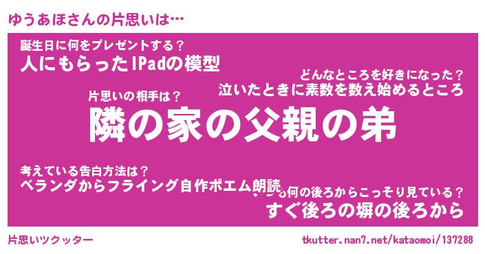 | 意味不明あだ名 | 『ペロリンゆうあほ』『永久保存ゆうあほ』 |