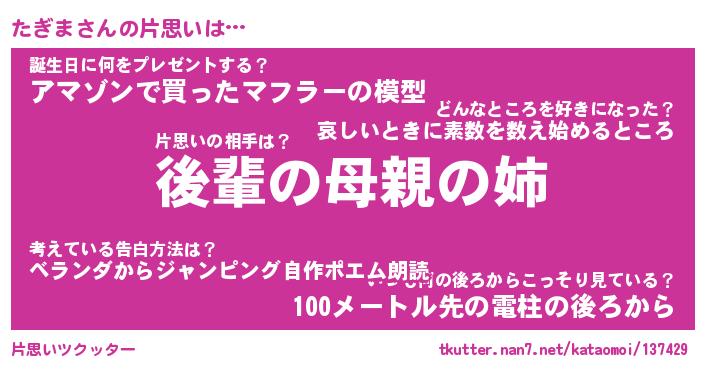 | ヘコむあだ名 | 『たぎにー』『酢こんぶ』『たぎ太郎』 |