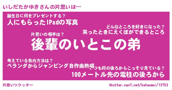| ヒーロー風カッコイイあだ名 | 『スーパーイシダタカユキ』 |