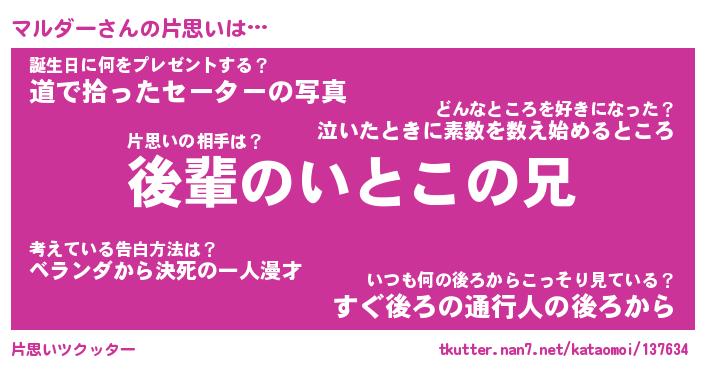 | 意味不明あだ名 | 『ペロリンマルダー』『永久保存マルダー』 |