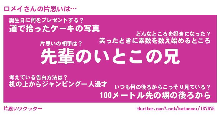 | ヘコむあだ名 | 『ロメもー』『豆乳』『ロメを』 |