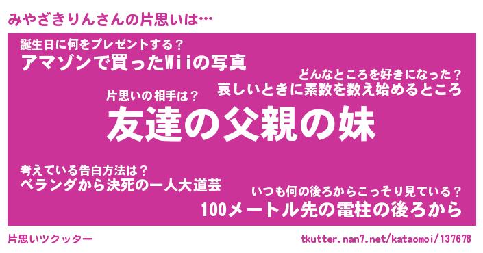 | ヘコむあだ名 | 『みやにゅー』『なまこ酢』 |