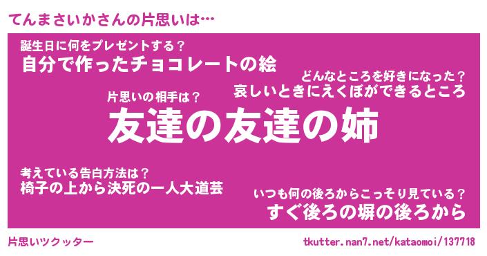 | ヘコむあだ名 | 『てんっふぃ~』『つくし』 |