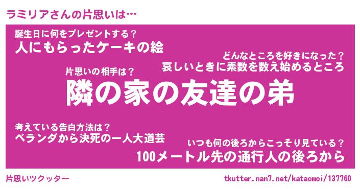 | 意味不明あだ名 | 『ペロリンラミリア』『永久保存ラミリア』 |