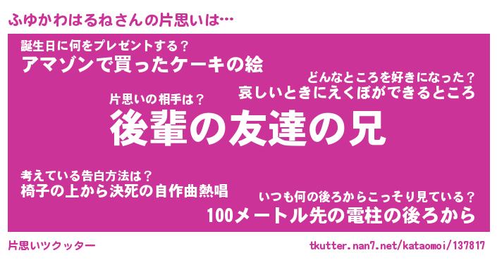 | 伝説のあだ名 | 『封印されしスナイパーふゆかわはるね』 |
