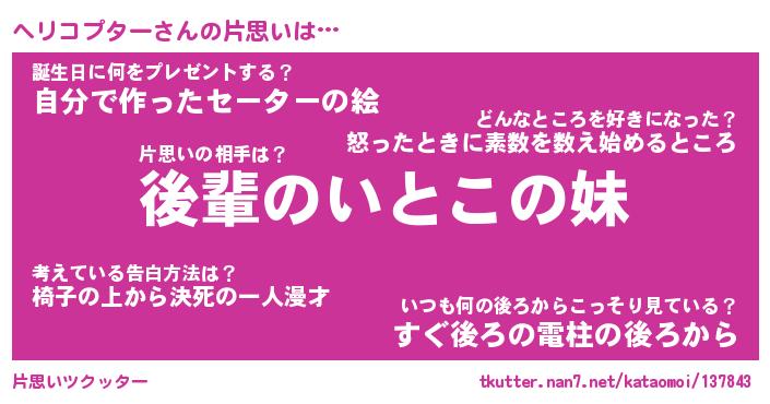 | 胡散臭い通販商品みたいなあだ名 | 『モテモテ間違いなし水晶球…その名も「ヘリコプター」』 |