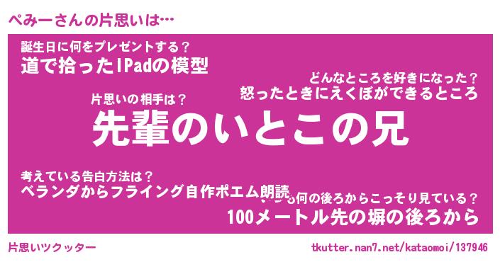 | 胡散臭い通販商品みたいなあだ名 | 『モテモテ間違いなし水晶球…その名も「ぺみー」』 |