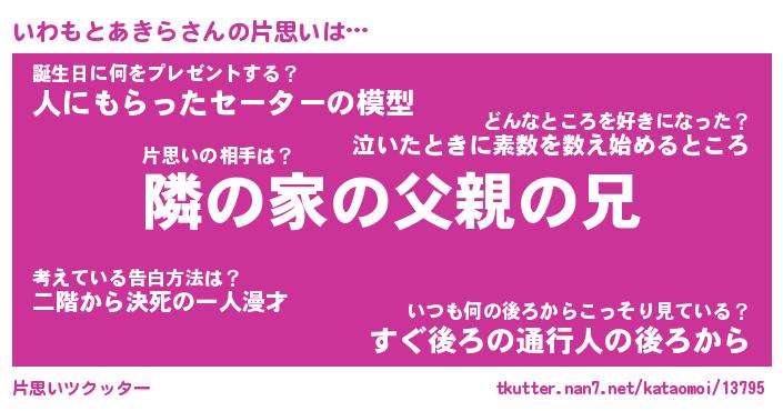 | ヘコむあだ名 | 『いわふぇ~』『レバニラ』『いわお』 |
