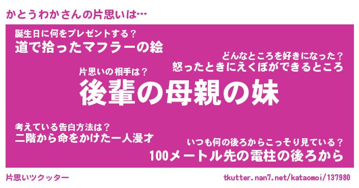 | ヘコむあだ名 | 『かとにー』『豆乳』『かとを』 |